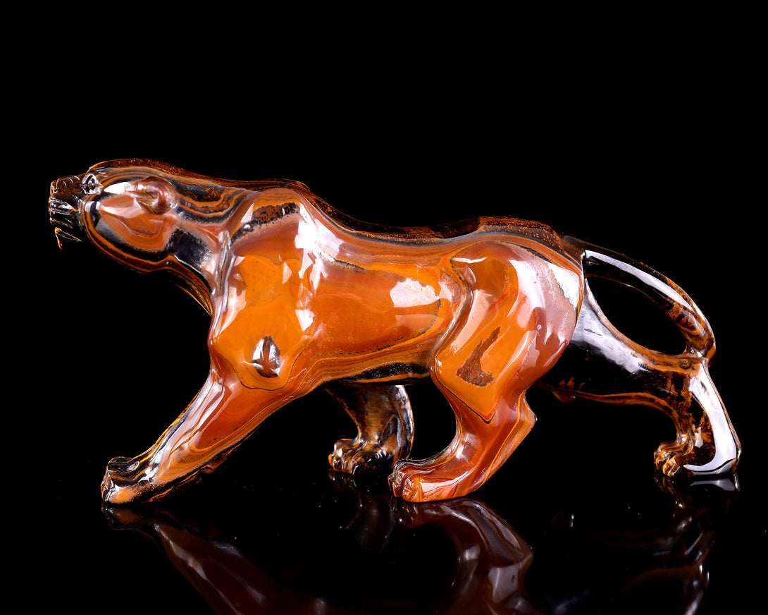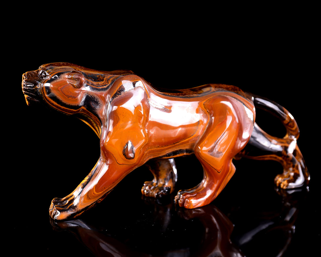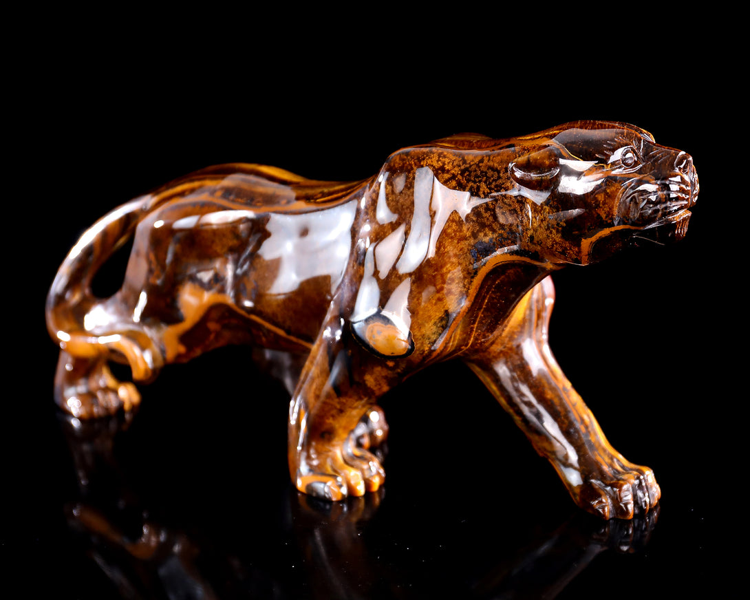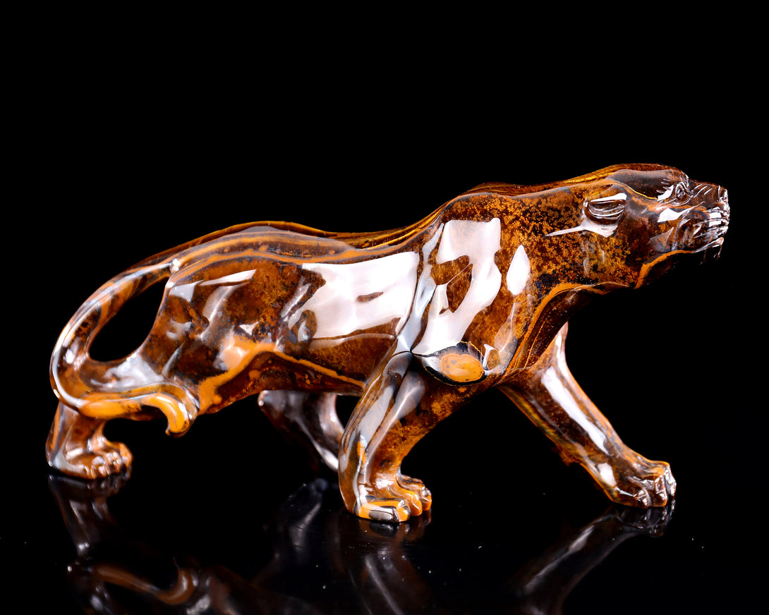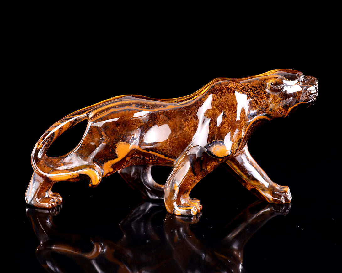 9.8" Tiger Iron Eye Hand Carved Crystal Leopard Sculpture
