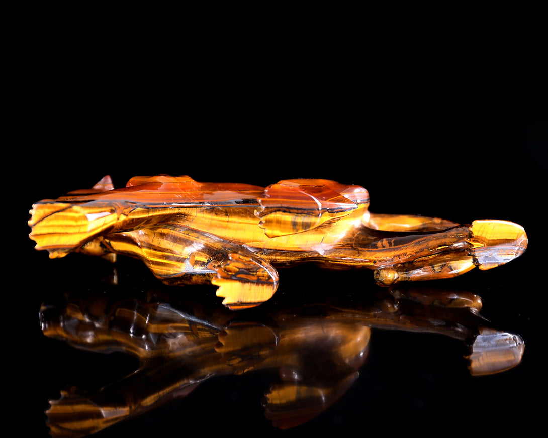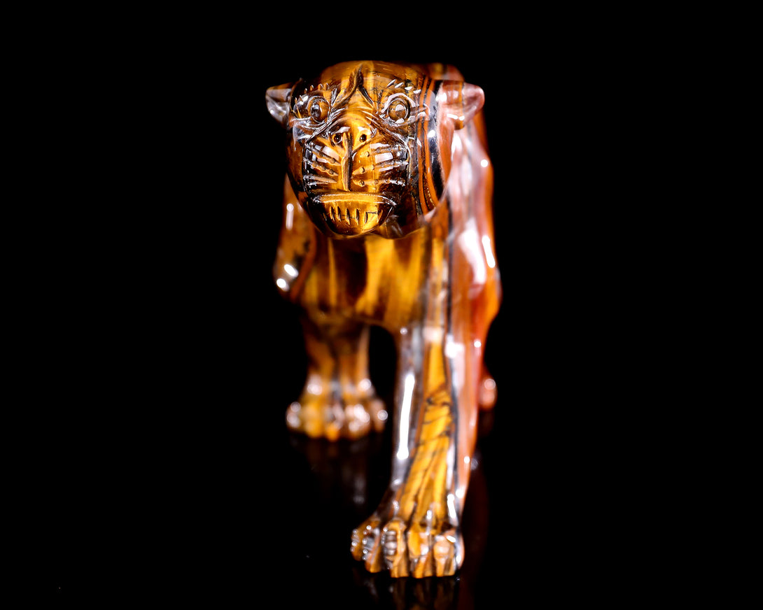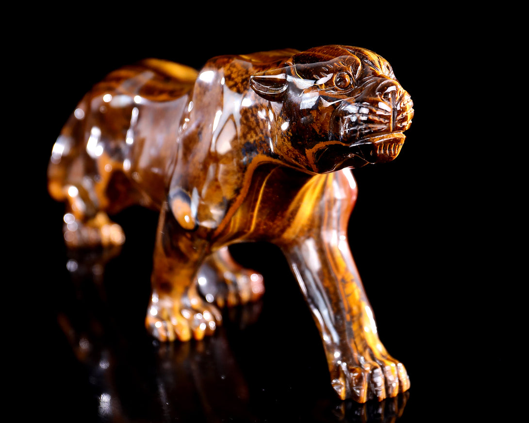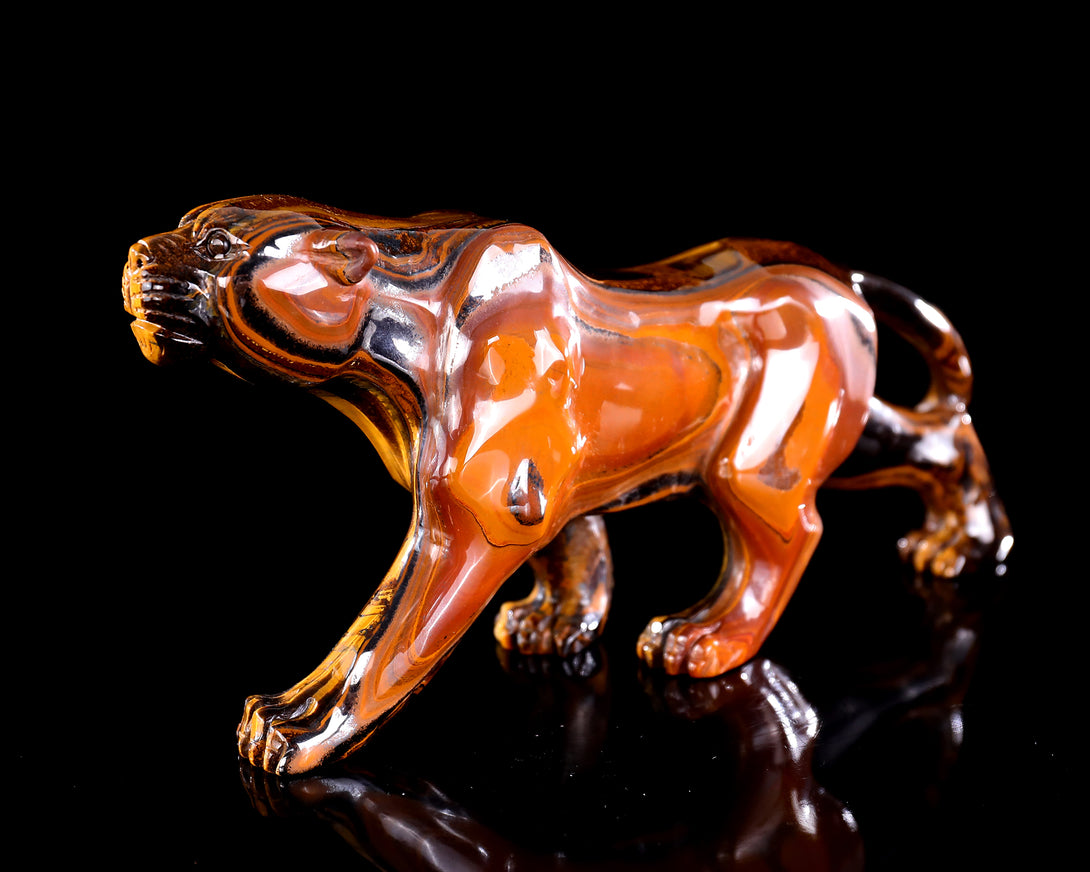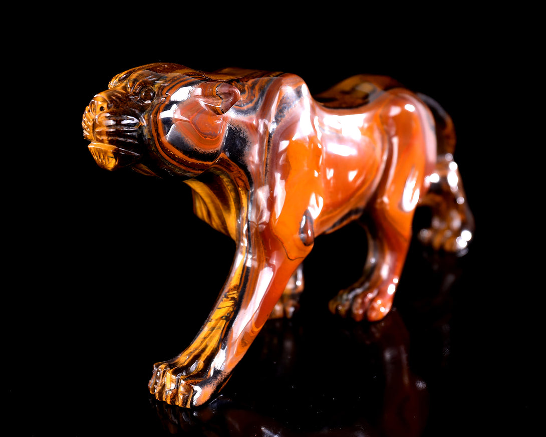 9.8" Tiger Iron Eye Hand Carved Crystal Leopard Sculpture